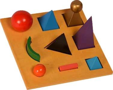 - Feature: 3D solid shapes in colors matching AMI and IMTC Montessori grammar standards